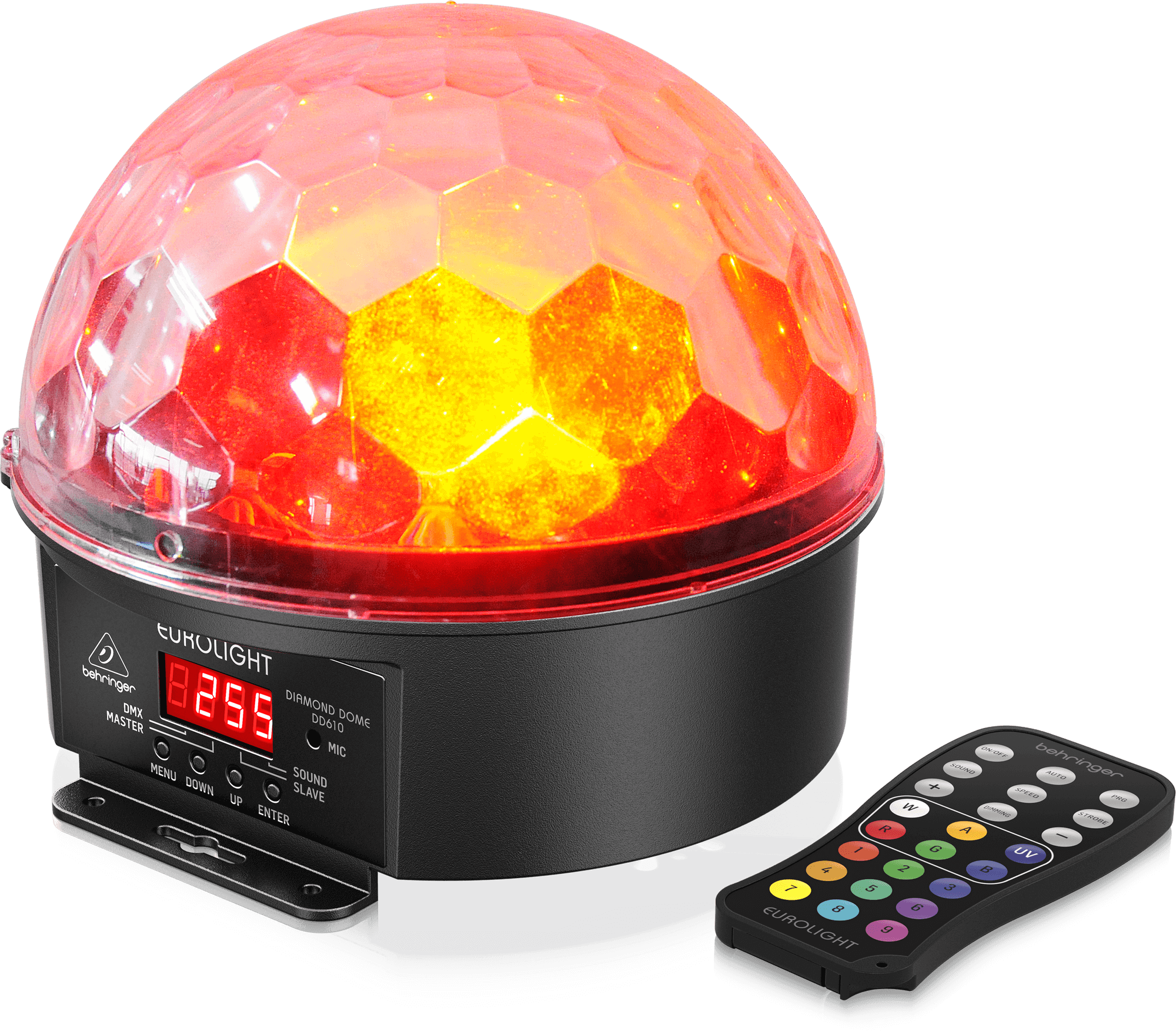 - Professional multimode RGBWA-UV LED mirror ball lighting effect with remote control up to 33 ft (10 m) range of wireless freedom