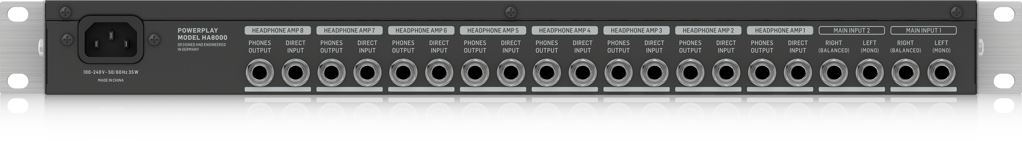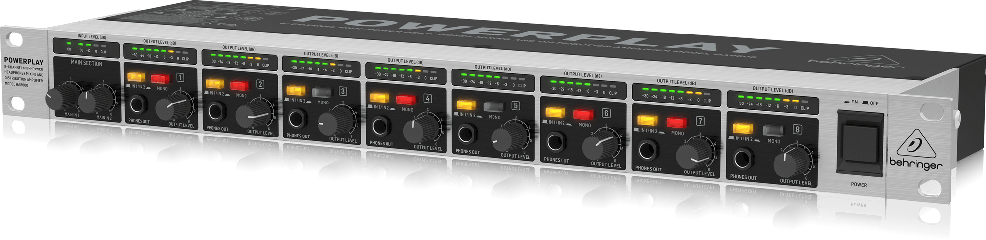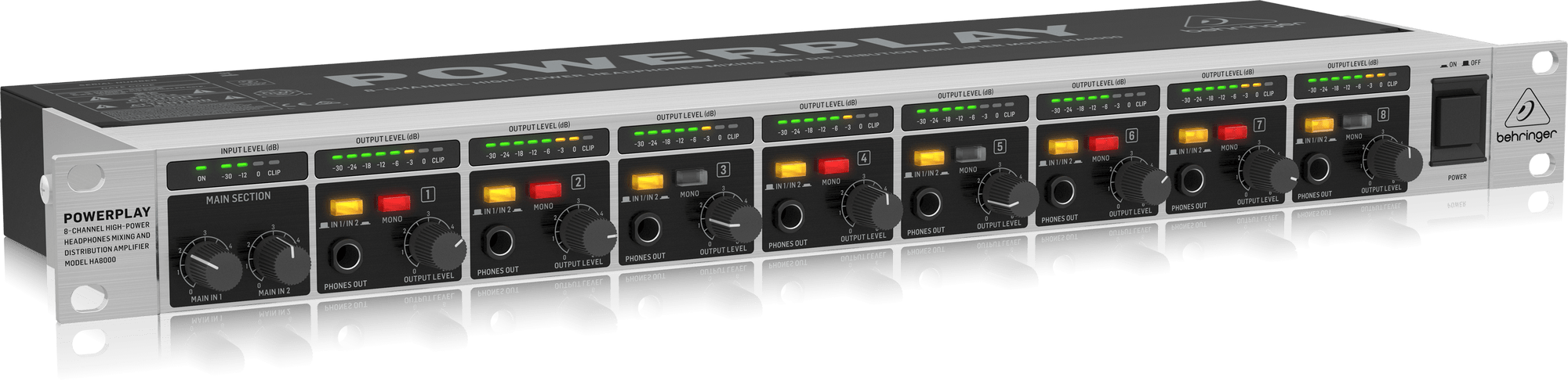 - 8 totally independent stereo high-power amplifier sections in one rack space