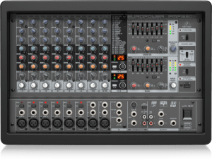 - Ultra-compact rack-mountable 2 x 800-Watt stereo powered mixer (1600-Watt bridged mode)